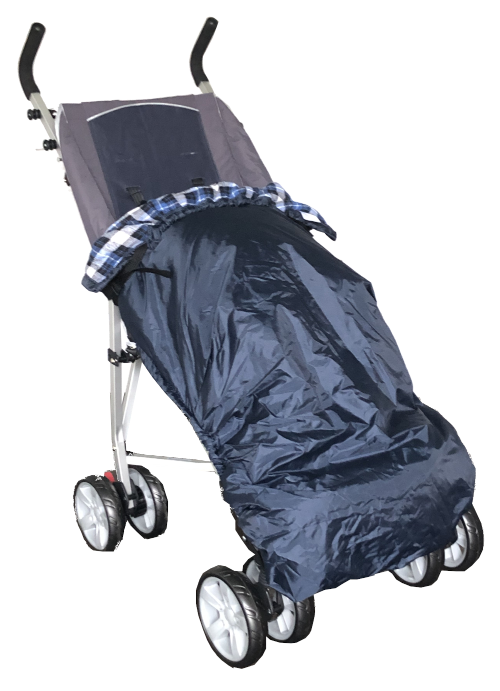 Elasticated end fits over the footplate, at the top the Cosy Cover has straps which attach to the pushchair frame.