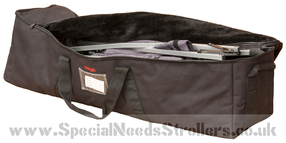 There isn't an official Travel Bag for the Budget XL and it is too large for 'universal' stroller bags. We supply this heavy duty padded and lined bag and a Lightweight Travel Bag. The Travel Bag is generously sized making it easy to pack away the Budget XL and with room to spare for some accessories or other packing. Helps avoid losing the Footplate which isn't attached to the Budget XL when folded. Large three sided zippered lid for easy access, twin carry handles plus extra end handles. NOTE. The padded lining of the bag is a 'faux-fur', it pads the bag for protection but may collect dirt from the pushchair wheels. Protects your Budget XL from knocks & bumps in transit (especially on airlines) and keeps the footplate with the pushchair...but it does not protect against crushing. If you can, get it to the aircraft gate then put the pushchair in the bag, don't hand it over at the checkin desk! Compatibility - this product can be used with the Excel Elise, DoBuggy, Maclaren Major Elite and the Mobiquip (MQ XL) pushchairs.